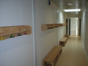 Dalles éclairantes, détecteurs de présence et temporisation de la luminosité, chauffage par panneaux rayonnants, chauffe-eau relié à 2 capteurs solaires posés en toiture Bardage bois, complément d’isolation de plancher, doublage intérieur.