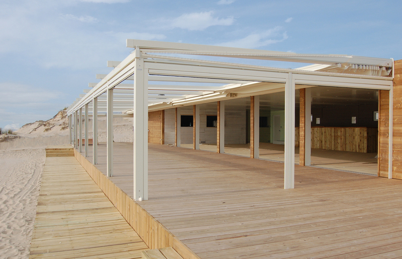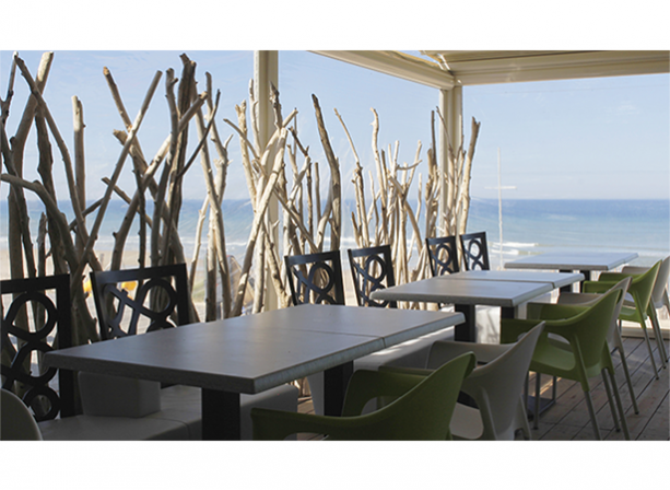 Mise en place d’une structure pour un restaurant sur un bord de plage.