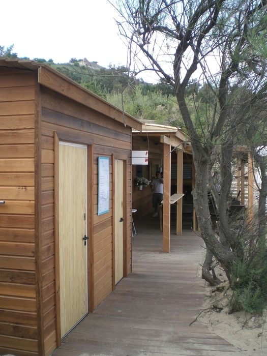 Mise en place d’une structure pour un restaurant sur un bord de plage.